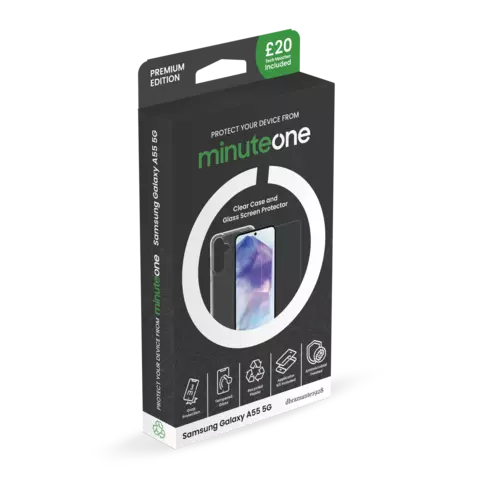 Samsung A55 5G Minute One Premium Clear Case and Glass Screen Protector