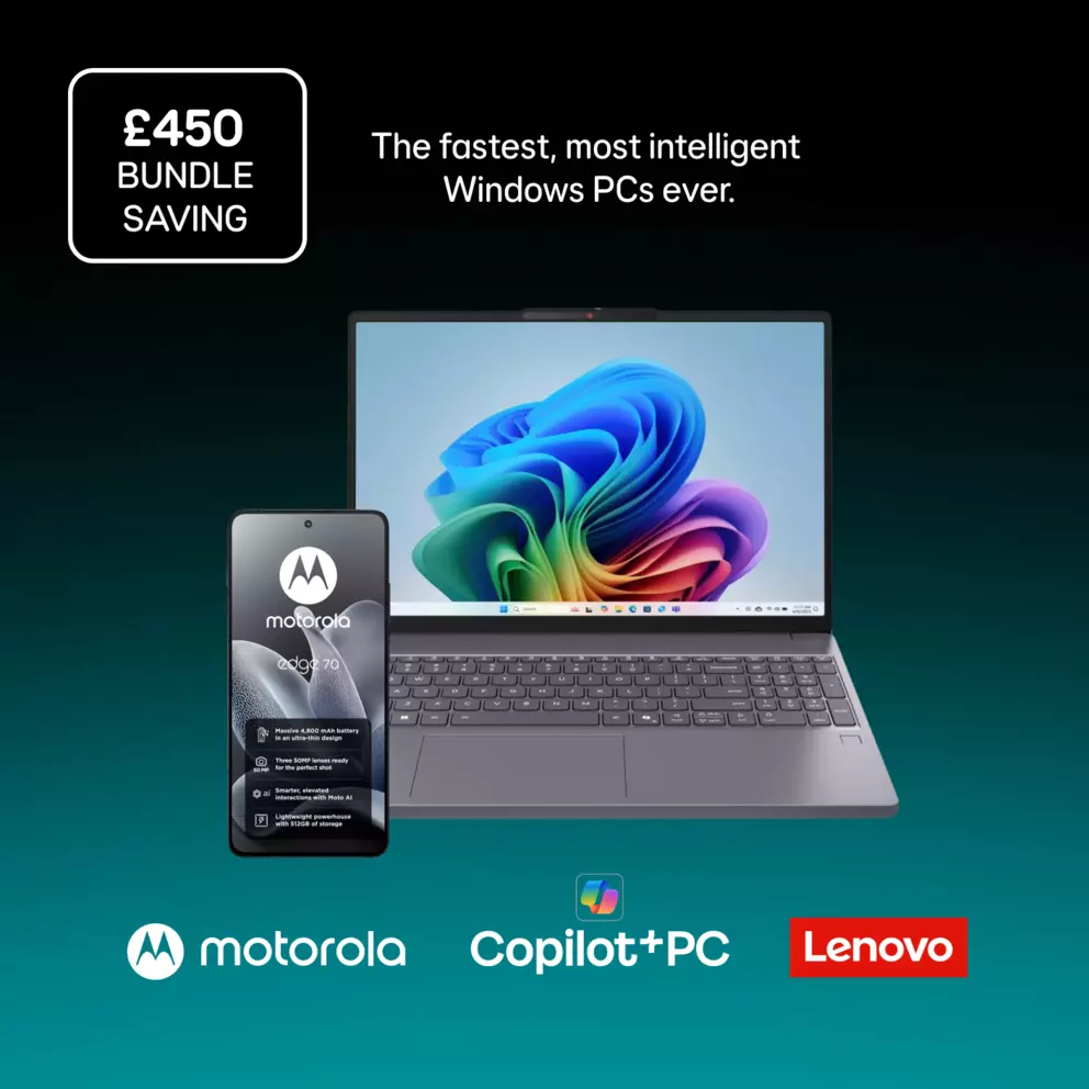 Buy Lenovo IdeaPad Slim 3 with the Motorola Edge 70 and save £450. Simply add both to basket and checkout. Offer ends 30 January 2026.