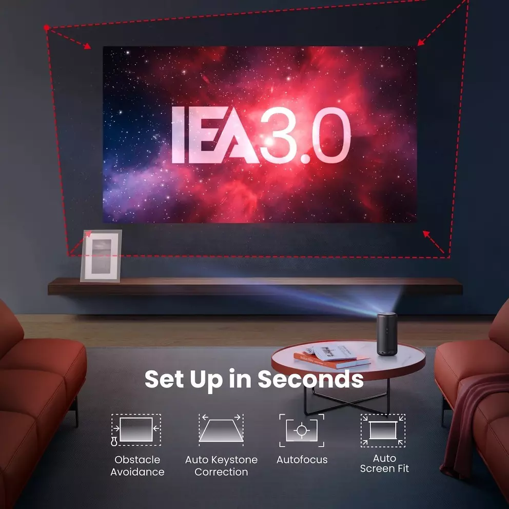Set up your projector anywhere with multiple projection modes. Whether you want to mount it on the ceiling, place it in front of your screen, or use it for rear projection, the Nebula Capsule 3 offers versatile options for a perfect viewing experience.