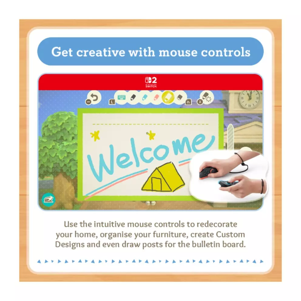 - Stay creative with intuitive mouse controls on the Joy-Con™ 2, perfect for redecorating and designing.