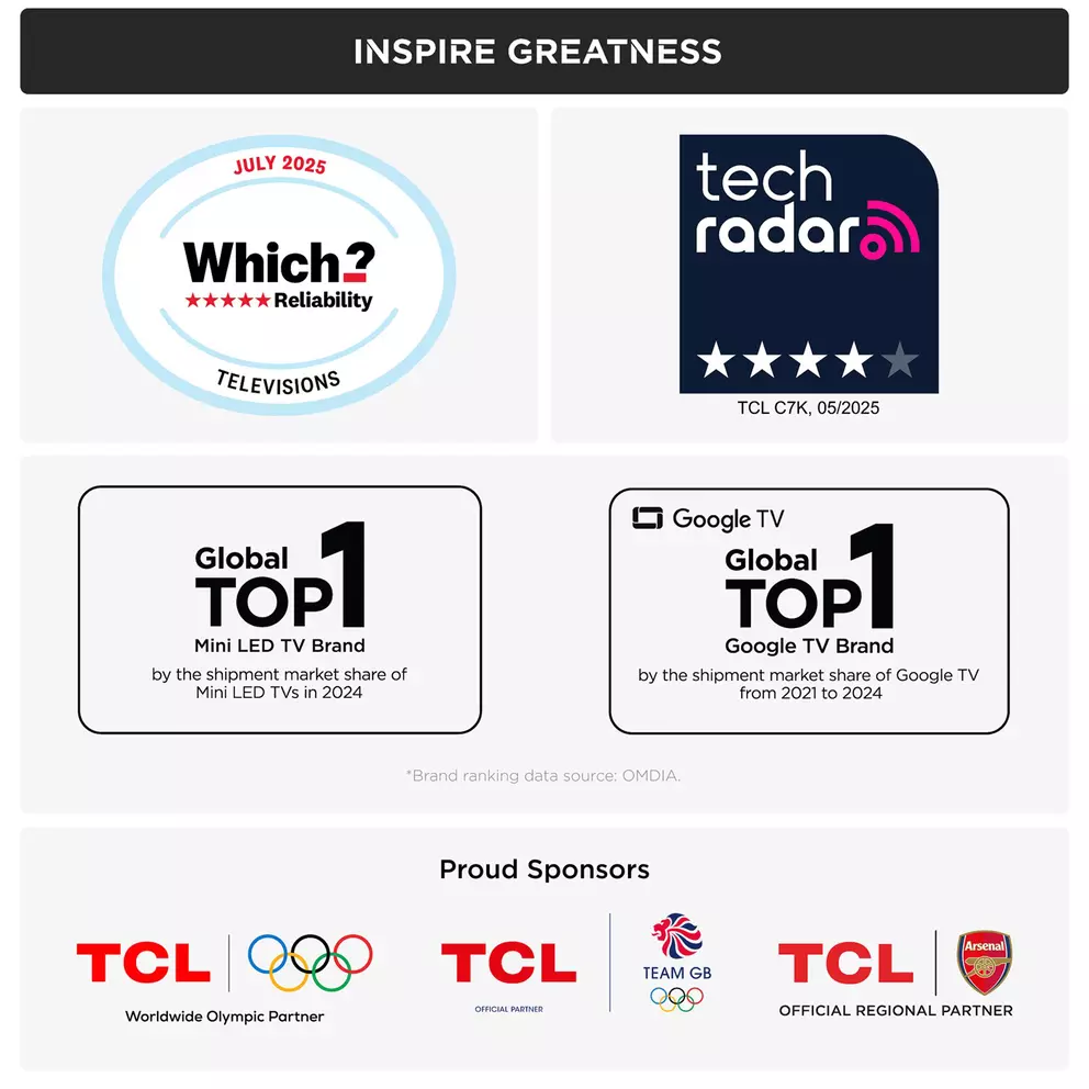 TCL’s AiPQ Pro Processor enhances every frame in real-time for sharper detail, deeper contrast and fluid motion. IMAX Enhanced certification and Filmmaker Mode bring the director’s vision to life, while the 144Hz native display and 288Hz Game Accelerator ensure ultra-smooth action, even in the fastest scenes.