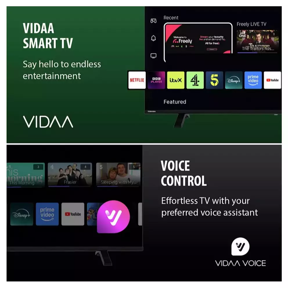 The VIDAA OS offers a fast, user-friendly Smart TV experience. Your favourite apps are easy to find thanks to the customisable launcher and universal search. Enjoy one-touch access to popular services like Netflix, YouTube, Amazon Prime Video, Rakuten TV and Freely, all directly from the remote.
