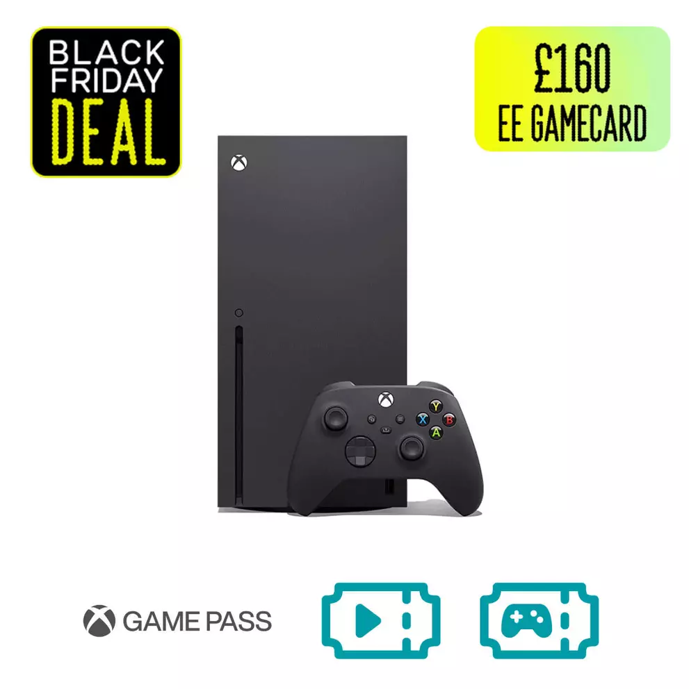 Save £48 on this Black Friday deal that includes an Xbox Series X console, £160 EE GameCard, which can be spent on 12 months of Xbox Game Pass Ultimate, and 24-month EE Gamer’s and Video Data Passes.